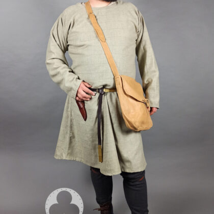 Średniowieczna tunika typu Bocksten beżowa w kratkę M