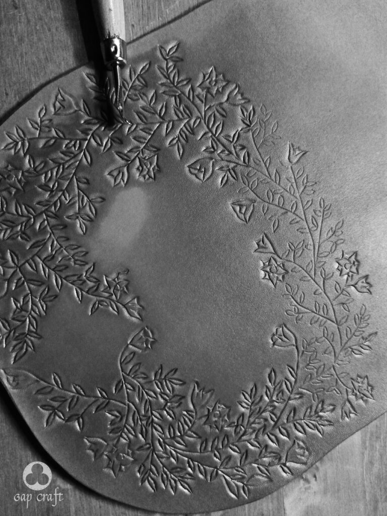 Znając projekt, następnie wybieram grubość materiału, wiedząc, iż wyrób będzie farbowany w pracowni -wówczas zawsze wykorzystuję skórę roślinnie garbowaną ( ma to wpływ nie tylko na łatwiejszą pracę przy niej czy możliwości twórcze m.in. farbowanie czy tłoczenie wzorów ale i ekologie!), wykrawamy, farbujemy, obrabiamy krawędzie, tłoczymy wzór ręcznie!